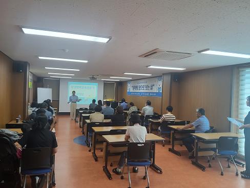 ▲ 환경변화교육전문가 2급 양성 과정 강의가 어울림방에서(도서관) 한창이다. |