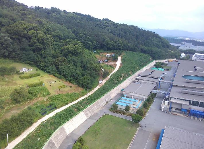 붕괴위험지역 비탈면 6,000㎡에 대해 작년 10월부터 공사를 시작해 소일네일공(Soil-nail, 토사에 강재삽입으로 지반을 안정화시키는 공법), 녹생토(잔디와 초화류 씨앗뿜어뿌리기)시공을 마무리하며 우기 전 완료했다.