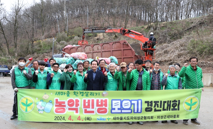 [뉴스서울] 의성군 새마을회는 탄소중립 실천과 새마을환경 살리기 생명운동의 일환으로 4.4, 4.11, 4.18. 3일에 걸쳐 한국환경공단 의성사업소에서'2024년 농약 빈병 모으기 경진대회'를 개최한다.