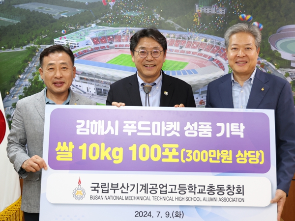 홍태용 김해시장은 “이번 기부를 통해 김해시 푸드마켓을 이용하는 많은 이들에게 큰 힘이 될 것이며 따뜻한 마음으로 함께해 주신 국립부산기계공업고등학교총동창회에 진심으로 감사한다”고 말했다.