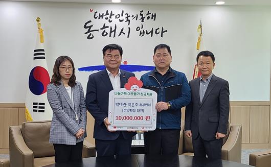 [뉴스서울] 동해시는 지난 4월 18일 김태권‧박은주 부부 아너소사이어티(동해추암횟집 대표)에서 다가오는 가정의 달을 맞아 관내 한부모 가정 및 조손가정 등 어려운 이웃들을 위해 성금 1천만 원을 기탁하였다고 밝혔다.
