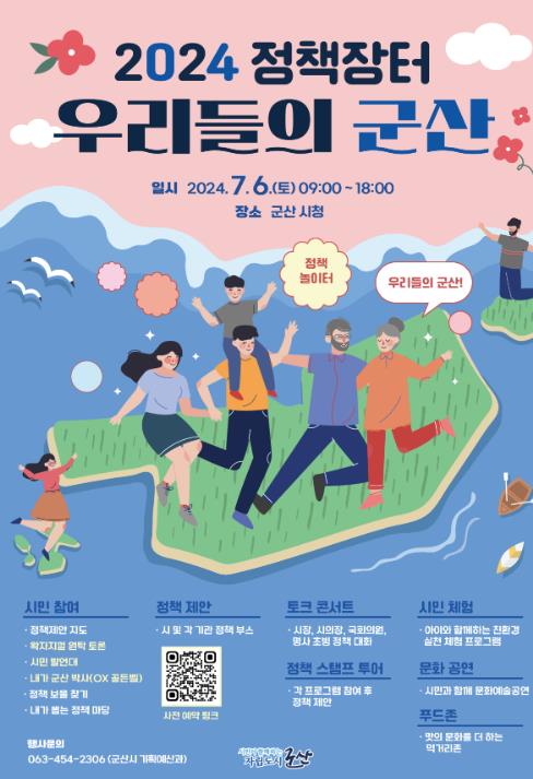 강임준 군산시장은 “처음 개최되는 정책 장터를 통해 다수의 시민 의견을 현장에서 듣고 논의하는 숙의 민주주의를 실천하는 공론장을 만들어 가겠다”며, “시민의 참여로 완성되는 행사인 만큼 많은 시민들의 관심과 적극적인 참여를 바란다”고 밝혔다.