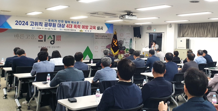 [뉴스서울] 의성군은 지난 24일 대회의실에서 고위직(5급이상) 공무원 50명을 대상으로 4대(성희롱·성매매·성폭력·가정폭력) 폭력예방 교육을 실시했다고 밝혔다.