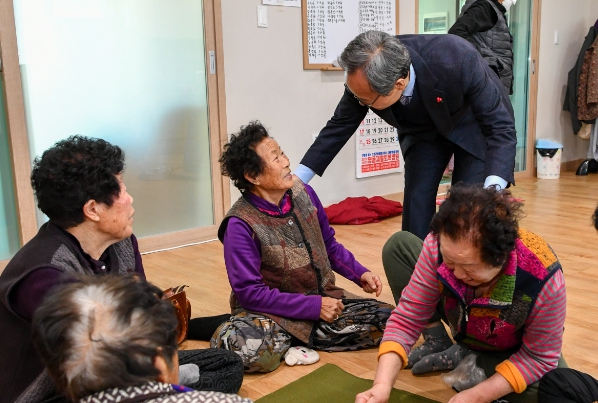 ▲ 박남서 영주시장이 경로당을 찾아 어르신들의 안부를 여쭙고 있다 |