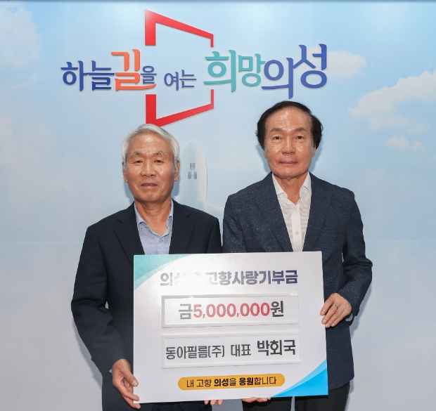 [뉴스서울] 의성군은 지난 6월 28일 박회국 동아필름 주식회사 농업회사법인 대표이사가 고향사랑기부금 개인최고액인 500만원을 의성군에 기탁했다고 밝혔다.