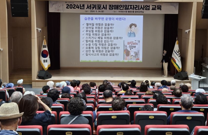 [뉴스서울] 서귀포시는 24일 서귀포시청 별관2층 문화강좌실에서 장애인일자리사업 참여자 및 담당자 등 120여명이 참석한 가운데 2024년 장애인일자리 사업 참여자 교육을 실시했다.
