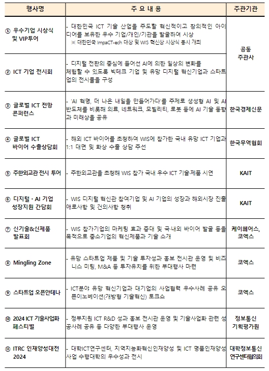 ▲ 2024 월드IT쇼 주요 행사(안) |