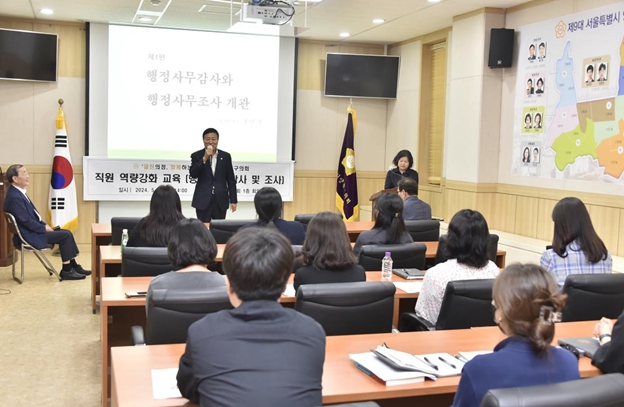 [뉴스서울] 양천구의회는 9일 오후, 오는 제1차 정례회 기간 중 실시되는 행정사무감사를 앞두고 효율적인 업무진행을 위해 의회사무국 직원대상 행정사무감사 및 조사 교육을 실시했다.