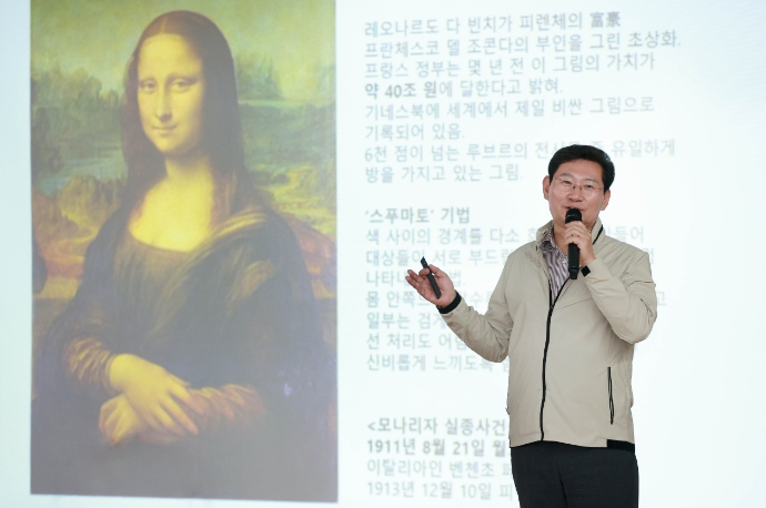 이상일 시장은 ‘레오나르도 다빈치’의 작품 ‘모나리자’에 적용된 ‘스푸마토’ 기법과 작품이 도난당했던 사건, 프랑스가 철저하게 이 작품을 관리하게 된 배경도 특강에 참여한 대상자들에게 전달했다.