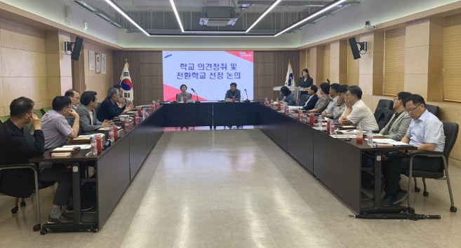 이날 간담회에는 전덕주 행정안전교육국장과 이미경 안산교육지원청 교육국장, 관내 13개 공립 일반고 교장 등 관계자 20여 명이 참석한 가운데 ‘경기형 과학고’ 신규 지정 공모사업 설명과 함께 일반고 전환 관련 의견을 논의했다.