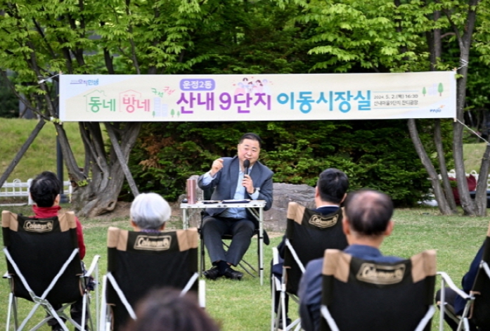 이번 이동시장실은 산내마을9단지 입주민(회장 이강석)들의 요청으로 열렸다. 자유롭고 편안한 분위기를 위해 잔디광장 내 문화공연 관람 시간도 곁들였다.