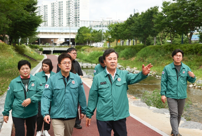 이날 점검 장소는 왕곡천과 오전동 일대로 2022년 기록적인 폭우로 피해를 입었던 곳이며, 현장에서 침수 방지 대책에 대한 보고를 받고 집중호우에 대한 대비 사항을 꼼꼼히 점검했다.