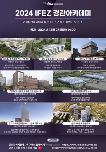 [뉴스서울] 인천경제자유구역청은 우수한 건축디자인을 발굴하고 소개하는 ‘2024년 IFEZ 경관아카데미’를 오는 27일 오후 2시부터 공개한다고 밝혔다.