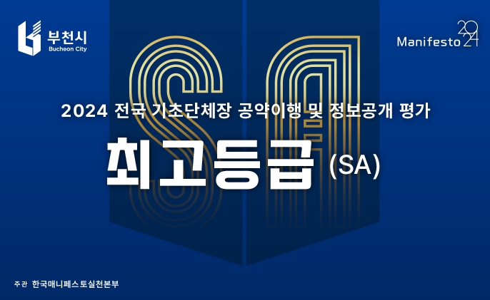 [뉴스서울] 부천시가 민선8기 기초단체장 공약이행 및 정보공개 평가에서 최우수등급인 SA를 받으며 공약 실천 의지와 실행력을 높이 인정받았다.