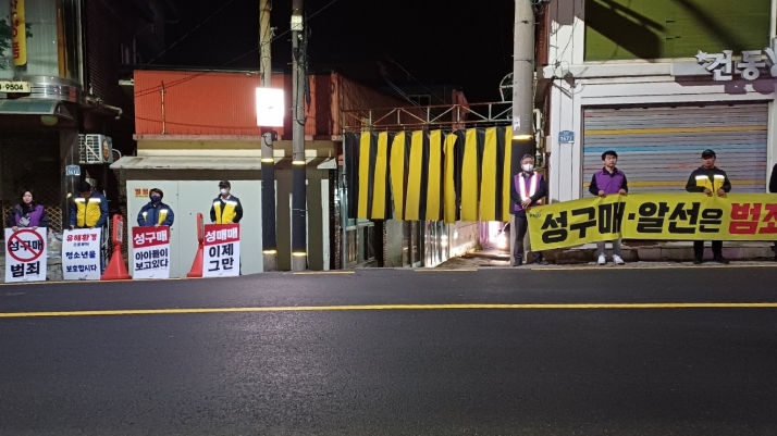 지난 19일 이후 한 주 만에 다시 진행된 이번 감시 활동은 지난번과 동일하게 집결지 각 출입구에서 참여자들이 출입하는 차량을 향해 청소년 보호와 성매매의 불법성을 알리는 팻말을 들어 성구매자를 차단하고 경각심을 일깨우는 캠페인으로 진행됐다.