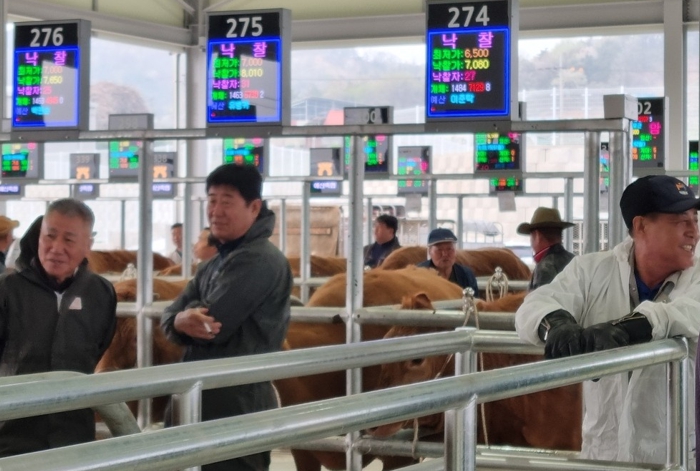 ▲ 스마트 가축경매시장 첫 경매 모습 |