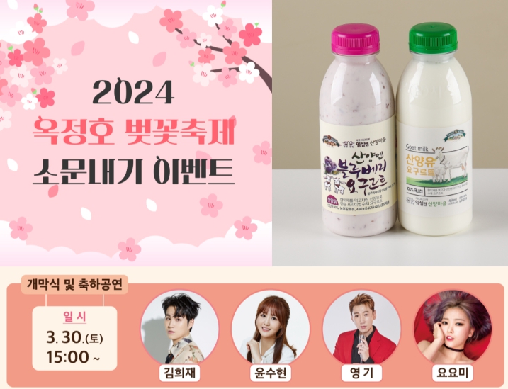 군은 지난 18일부터 오는 31일까지 유튜브, 카카오톡, 페이스북, 인스타그램 등 사회관계망서비스(SNS) 통해‘옥정호 벚꽃축제 개최 기념 소문내기 이벤트’를 진행 중이다.