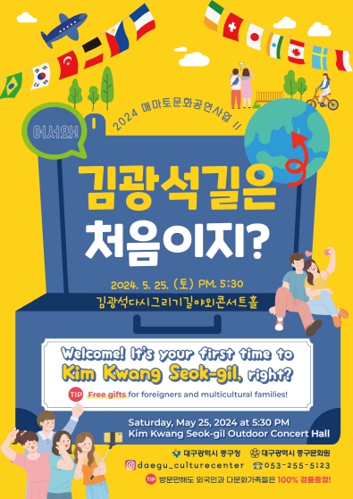 매마토 문화공연은 중구청이 주최하고 중구문화원이 주관하는 행사로 이번 공연은 ‘어서와! 김광석길은 처음이지?’라는 타이틀로 서로 다른 문화를 존중하고 함께 즐기면서 다문화에 대한 인식 개선과 다양한 문화체험의 기회를 제공하고자 기획됐다.