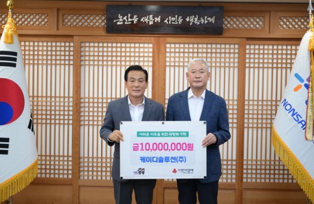 [뉴스서울] 논산시(시장 백성현)는 케이디솔루션(대표 윤희진)에서 7일 논산시청을 방문해 1천만원을 기탁했다고 전했다.