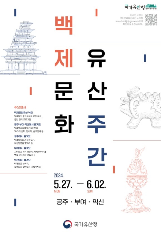 [뉴스서울] 공주시는 오는 27일부터 6월 2일까지 일주일간 백제왕도 공주와 부여, 익산 등 3개 시군에서 ‘2024 백제문화유산주간’을 개최한다고 밝혔다.
