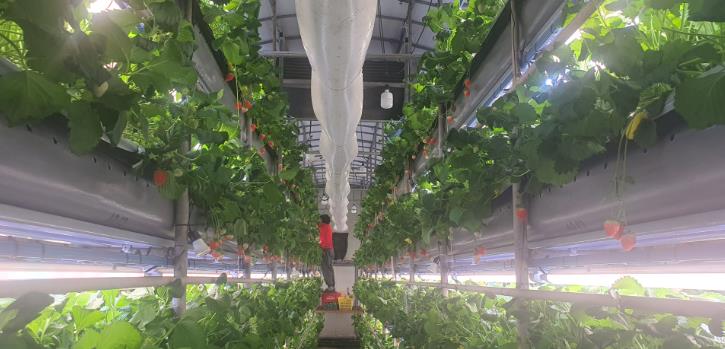 [뉴스서울] 논산시가 논산형 스마트팜의 일환으로 추진한 2023년 창고형 식물공장은 버섯재배사를 개조해 딸기 수직재배를 추진한 것으로 작년 3월 딸기 정식 후 올해 6월 현재까지 딸기를 생산하고 있다.