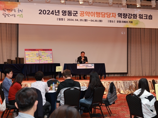 이번 워크숍에는 정영철 영동군수를 비롯해 각 부서 공약사업 담당자 60여명이 참여했다.