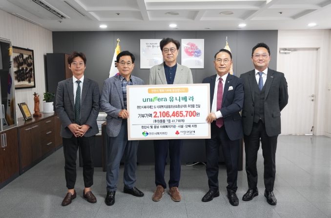 [뉴스서울] ㈜유니베라는 천안으로 본사 이전을 기념해 21일 21억 원 상당의 화장품과 건강기능식품 7종 4만1,718개를 천안시복지재단과 사회복지공동모금회 충남지회에 후원했다.