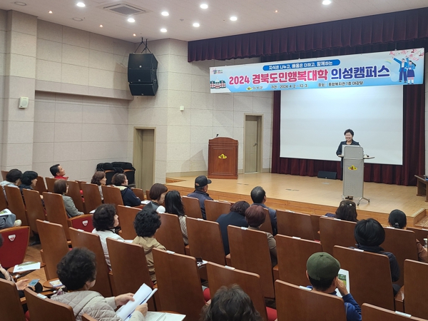 [뉴스서울] 의성군은 4월 2일 종합복지관 대강당에서 수강생 50여 명이 참석한 가운데‘색채건강법’이라는 제1차시 강의를 시작으로 2024년 제4기 경북행복도민대학 의성캠퍼스를 개강했다.