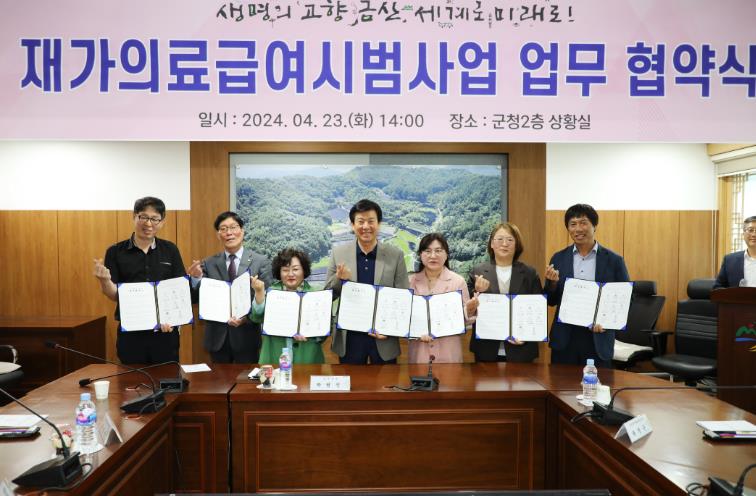 [뉴스서울] 금산군 등 7개 기관은 지난 23일 군청 상황실에서 재가 의료급여 시범사업 협력기관 협약을 체결했다.