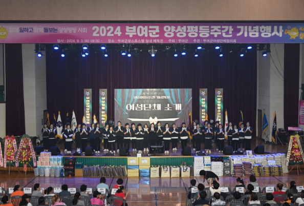 [뉴스서울] 부여군과 부여군여성단체협의회(회장 김명신)는 지난 3일 부여군유스호스텔 실내체육관에서 박정현 부여군수와 여성단체협의회 회원, 역대 고문, 기관 단체장 등이 참여한 가운데 2024년 부여군 양성평등주간 기념행사를 개최했다.