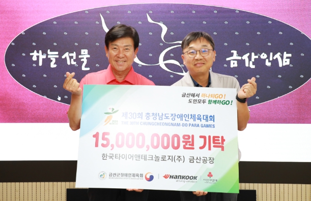 [뉴스서울] 한국타이어 금산공장은 지난 4일 제30회 충남도장애인체육대회의 성공적인 개최를 위해 금산군장애인체육회에 후원금 1500만 원을 전달했다.