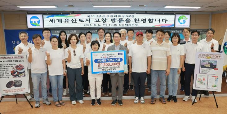 지난 6일, 7일, 지방자치인재개발원 제8기 5급 승진리더과정 교육생, 3개 분임이 교육기간 중 현장학습 차 고창을 찾아 고향사랑기부금 500만원을 기탁했다.