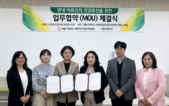 [뉴스서울] 계룡시는 어린이 급식시설에 대한 위생 및 영양관리를 전담하고 있는 계룡시어린이·사회복지급식관리지원센터와 계룡시 노인복지관이 9일 관내 어르신들의 건강 및 영양증진을 위한 업무협약(MOU)을 체결했다고 밝혔다.