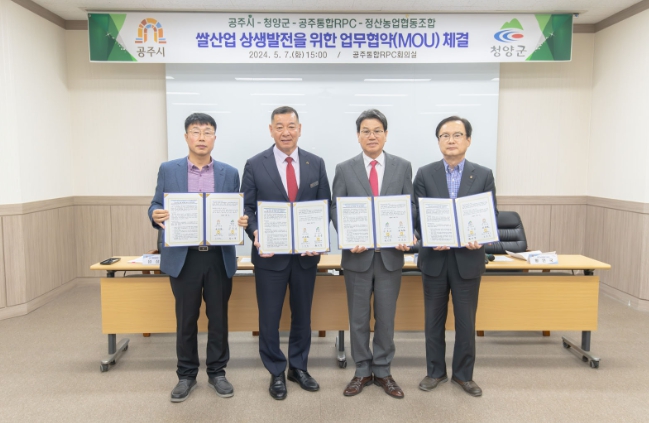 [뉴스서울] 공주시는 지난 7일 청양군 및 공주통합미곡종합처리장(RPC) 정산농협과 쌀 산업 상생발전을 위한 업무협약을 체결했다.