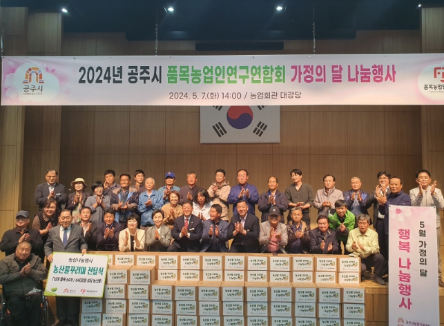 [뉴스서울] 공주시농업기술센터에서 육성·관리하는 품목농업인연구연합회는 지난 7일 각 연구회에서 마련한 농산물을 어려운 이웃들에게 증정하는 행복 나눔 행사를 실시했다.
