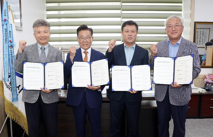 시는 지난 27일, 이학수 시장, 김호석 대일개발㈜ 회장, 이재연 농협중앙회정읍시지부장, 허수종 정읍시조합운영협의회 회장이 참석한 가운데 정읍쌀 소비 확대를 위한 업무협약을 체결했다.
