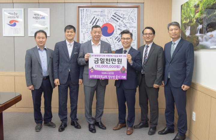 한편, 공주중앙장로교회는 2003년부터 지역복지를 위해 매년 이웃사랑 실천을 위해 7200만원의 성금을 기탁해 오고 있다.