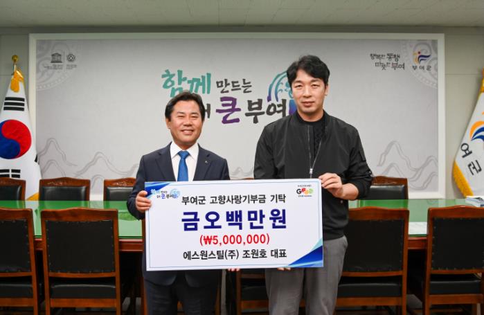 [뉴스서울] 에스원스틸(주) 조원호 대표가 지난 25일 부여군에 고향사랑기부금 500만 원을 기부하며 2년 연속 고향사랑기부에 참여했다. 금년 부여군 세번째 최고액 기부다.