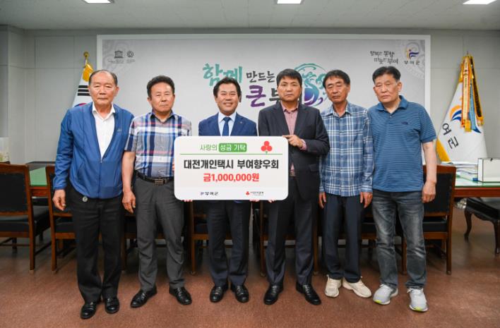 장효식 대전개인택시 부여향우회 회장은 “회원들이 고향을 사랑하는 마음을 모아 마련한 성금이 지역의 어려운 이웃에게 도움이 되길 희망한다”라고 밝혔다.