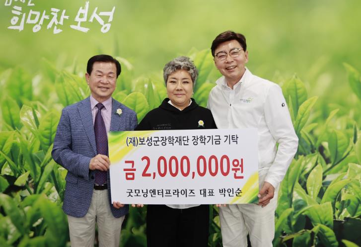 [뉴스서울] 보성군은 지난 2일 굿모싱엔터프라이즈 박인순 대표가 보성군장학재단에 지역인재육성 장학금 200만 원을 기탁했다고 밝혔다.