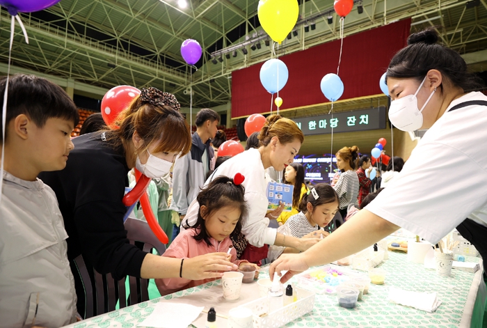 ▲ 제26회 청자골 어린이 한마당 잔치에서 어린이들이 체험을 하고 있다. |
