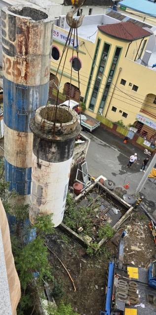 | ▲ 진주시, ‘2024년 노후 굴뚝 정비사업’ 1호 굴뚝 철거 완료 |