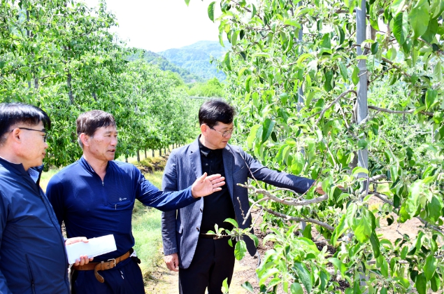 [뉴스서울] 최훈식 군수는 9일 사과 주산지 일원 농가들을 방문해 생육상태를 점검하고 격려했다.
