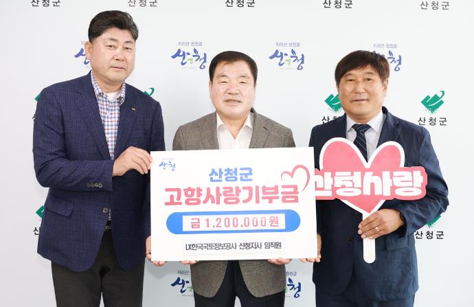 [뉴스서울] 산청군은 한국국토정보공사(LX) 산청지사가 고향사랑기부금 120만원을 전달했다고 7일 밝혔다.