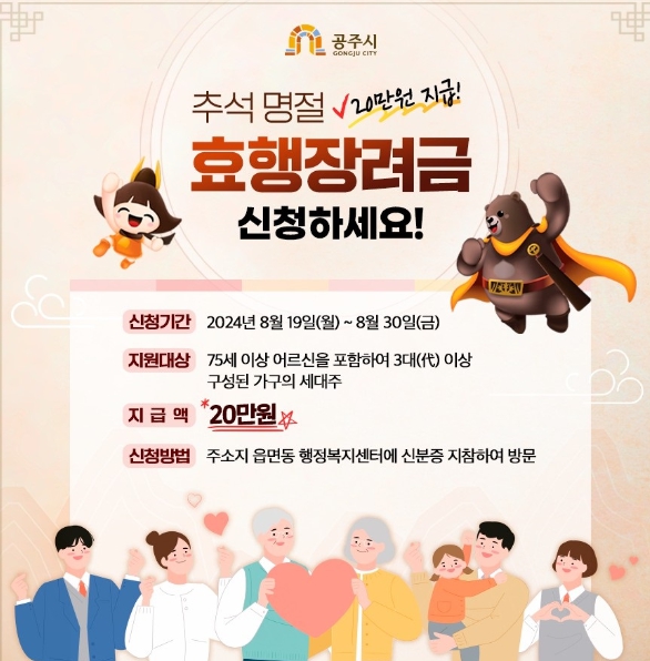 ▲ 공주시, 추석 명절 ‘효행장려금’ 20만원 지급 |