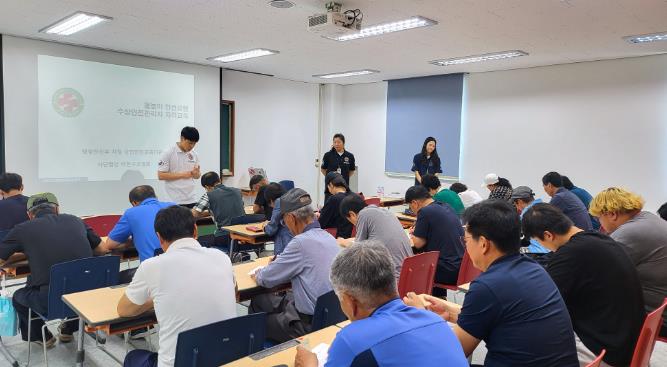 7월 1일부터 8월 31일까지 2개월동안 여름철 물놀이 관리구역(12개소)에 배치되는 안전관리요원 24명을 대상으로 이루어지는 수상구조 교육은 현장 위급상황 발생 시 대처를 위한 이론과 실습 교육으로 이루어졌다.