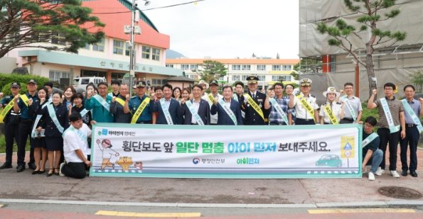 이승화 산청군수를 비롯해 산청경찰서, 산청교육지원청, 산청초등학교 관계자 등 30여 명이 참여한 캠페인에서는 ‘아이 먼저’ 어린이 교통안전 의식 함양에 대한 필요성을 홍보했다.