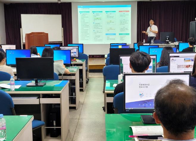 이번 교육은 부서별 세외수입 담당자 40여명을 대상으로 한국지역정보개발원(KLID) 지방세외수입운영지원단 교육팀 전문강사를 초빙하여 세외수입정보시스템을 활용한 부과, 체납관리, 과태료/과징금관리 등에 대한 업무 설명과 실습으로 진행되었다.