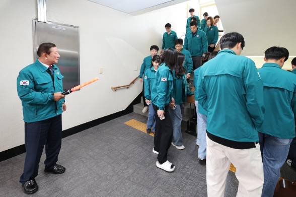 오후 2시 정각 적의 공습을 가정하여 군청 내 공습경보 사이렌을 발령 해 대피안내요원의 안내에 따라 지정대피소로 신속하게 대피했다. 또한 대피소에서 민방위대피소 위치 확인하기, 핵무기 공격시 행동요령 등 비상시 국민행동요령 교육을 진행했다.