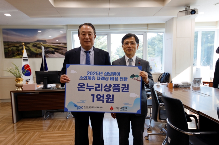 [뉴스서울] 제주국제자유도시개발센터는 2025년 을사년 설날을 맞아 소외계층 지원과 지역경제 활성화를 위해 1억원의 온누리상품권을 제주특별자치도사회복지공동모금회를 통해 기부했다고 20일 밝혔다.